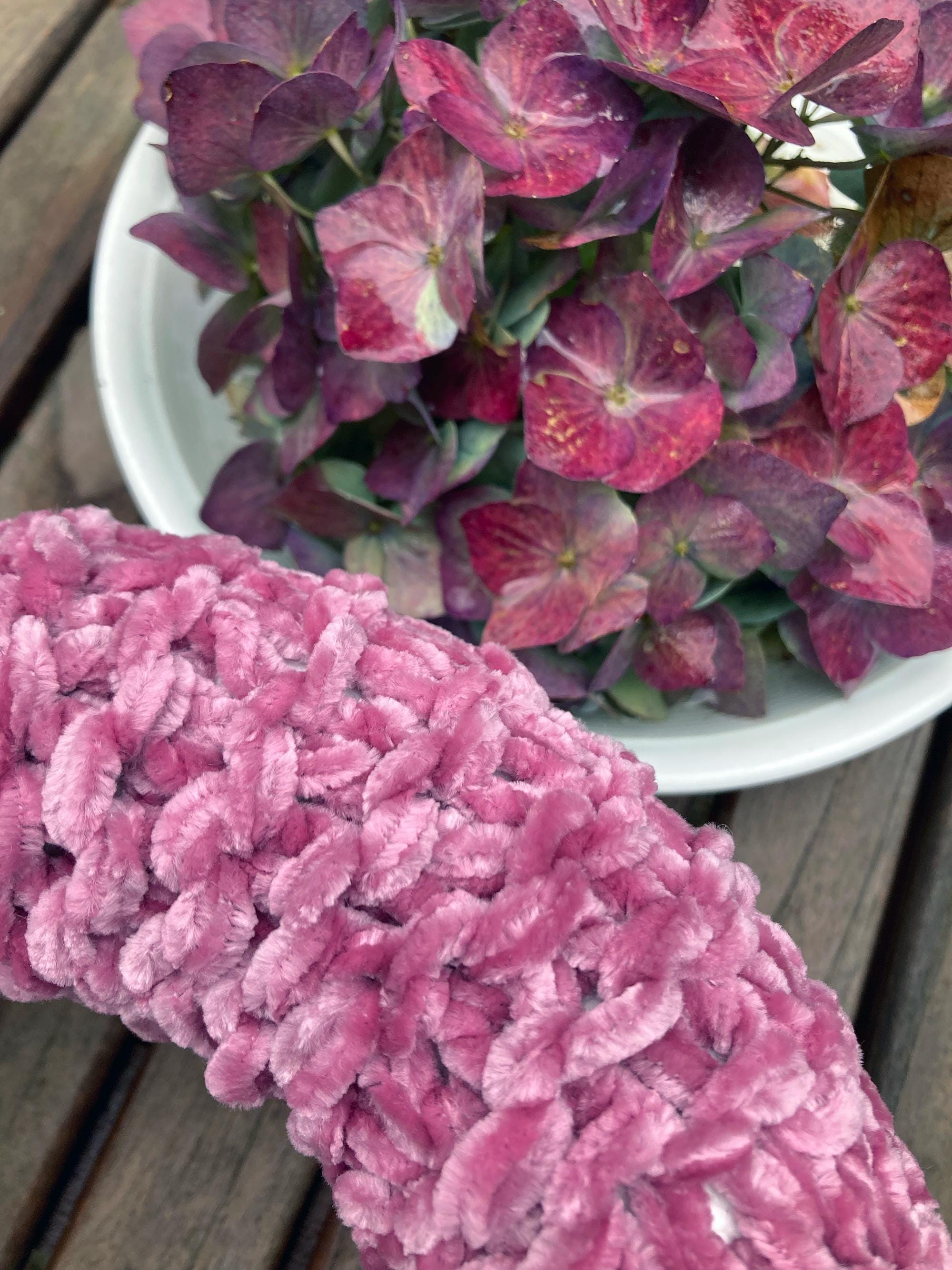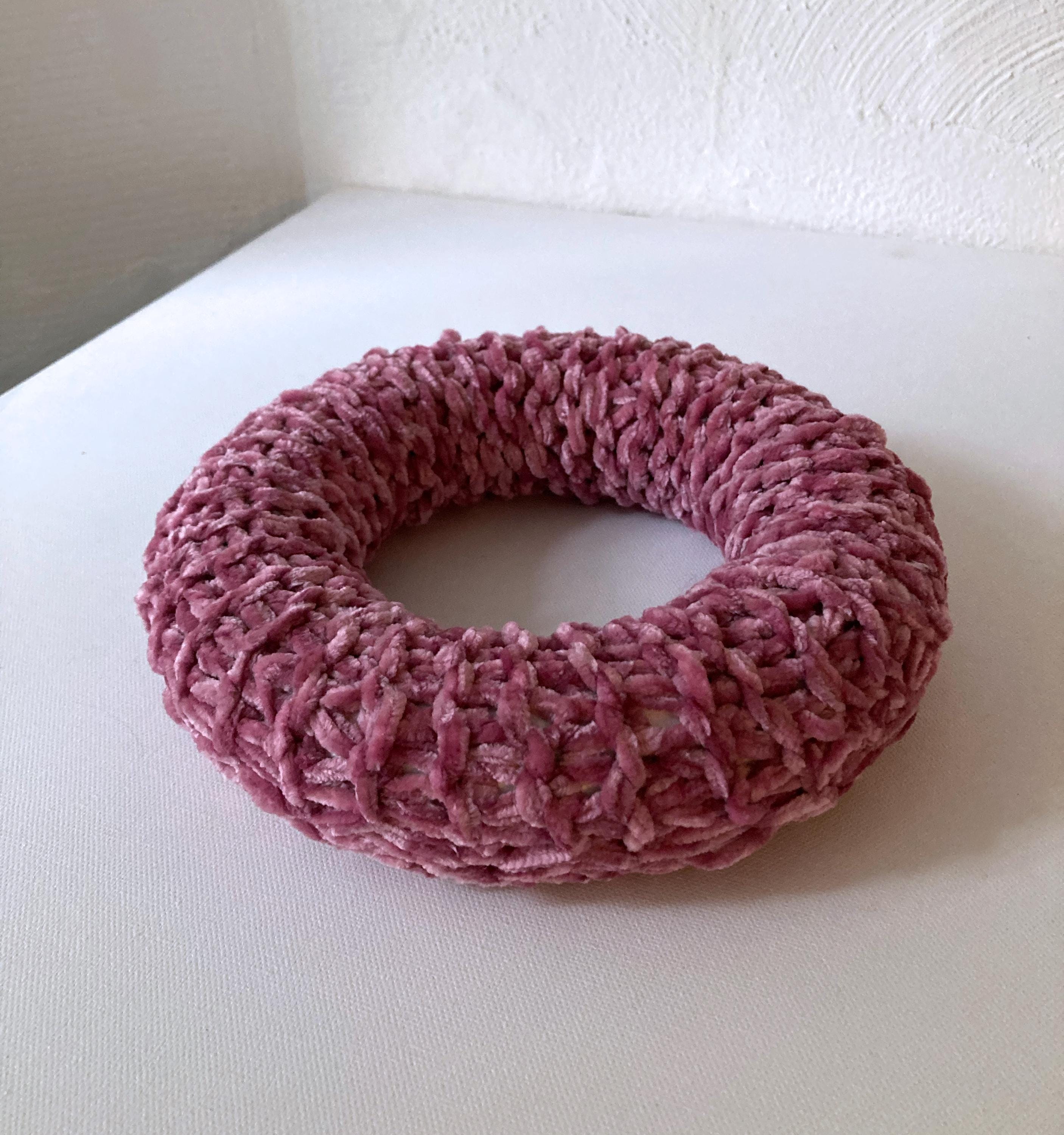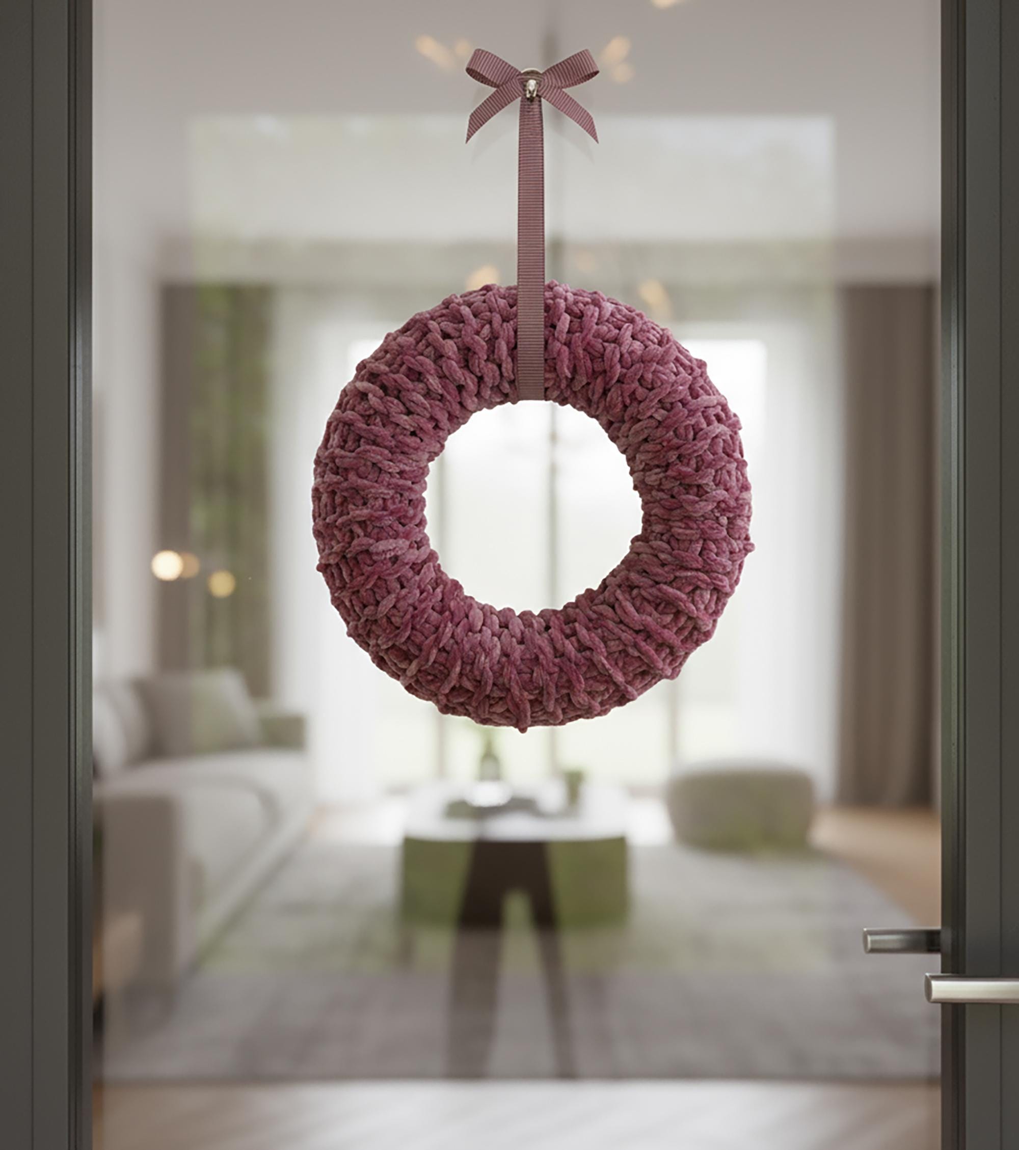 Autumn is the perfect time for decorating! Give your home a wonderful hygge atmosphere with this beautiful crocheted wool wreath in soft pink. It's lovingly hand-knitted from a high-quality, velvety-soft chenille yarn in the elegant color of soft pink. What an exceptionally stylish accessory for your home!