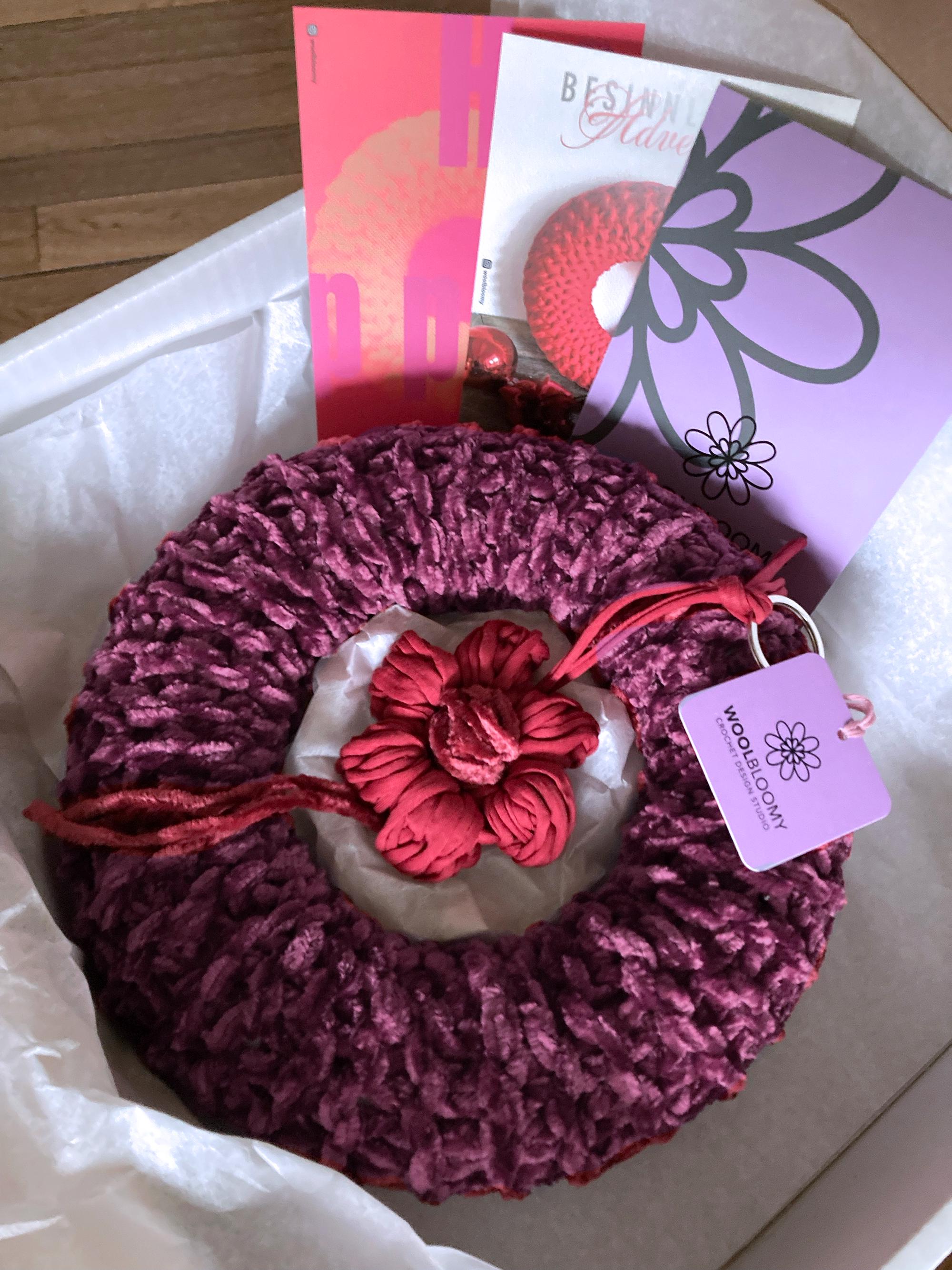 Your decorative wool wreath will be packaged with lots of love and care – and a little surprise included – and sent to you: a beautiful Edgarcard and a crocheted goodie as a key ring!
