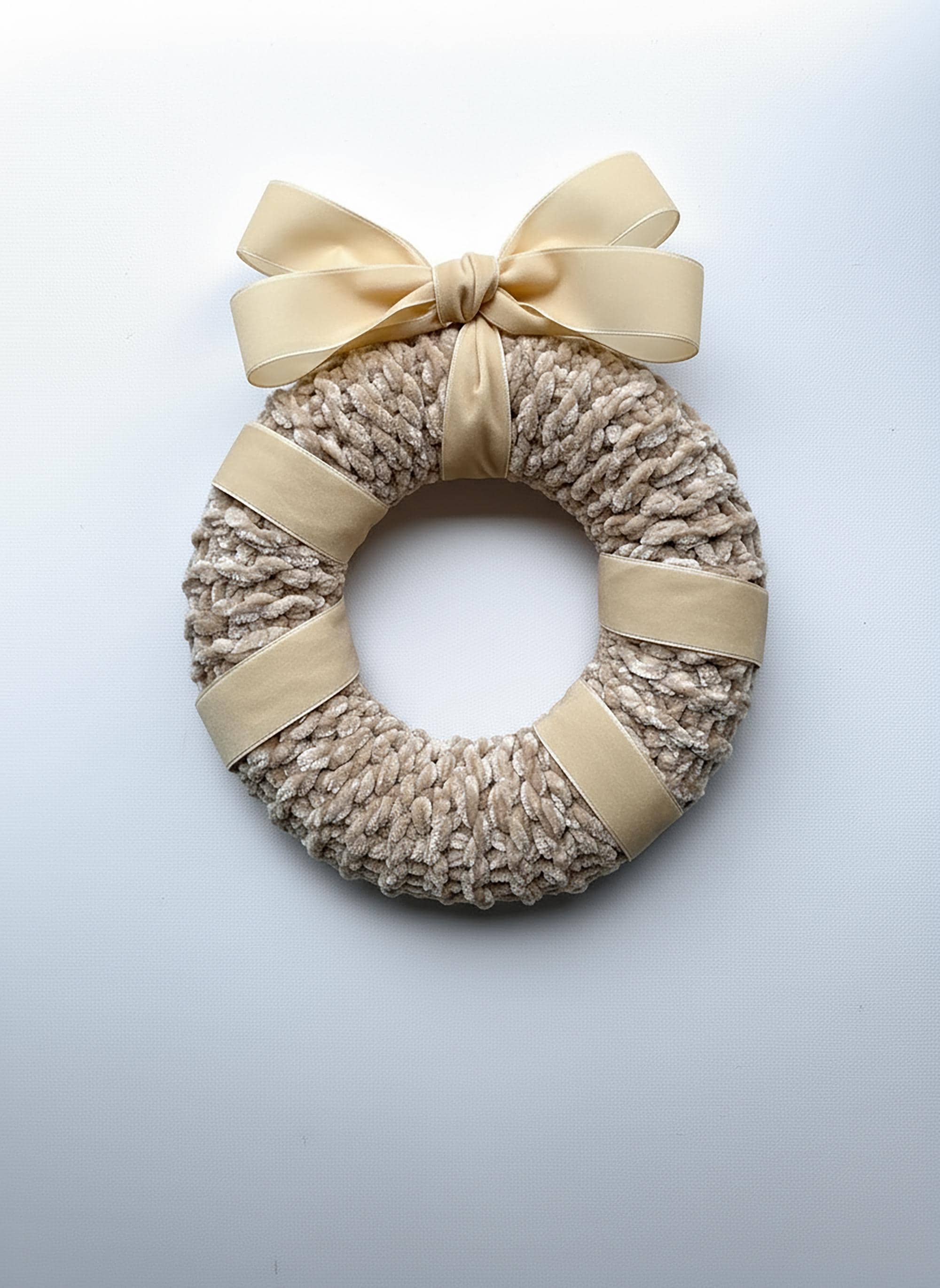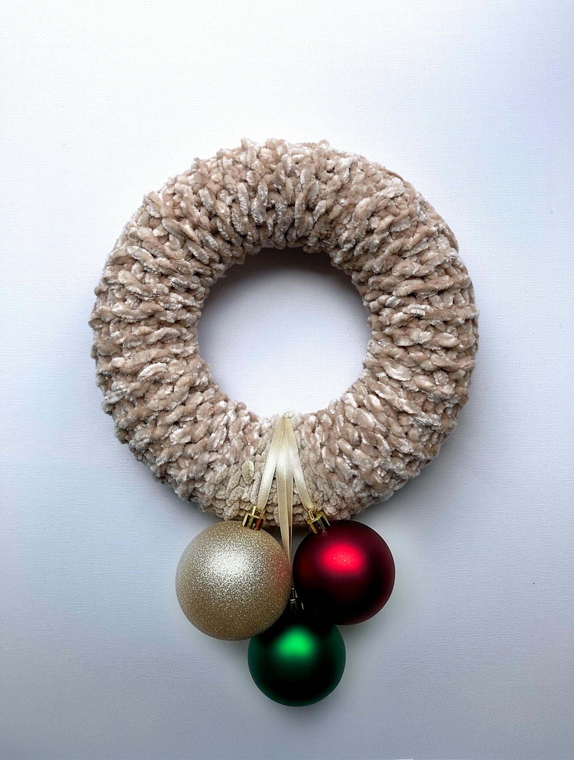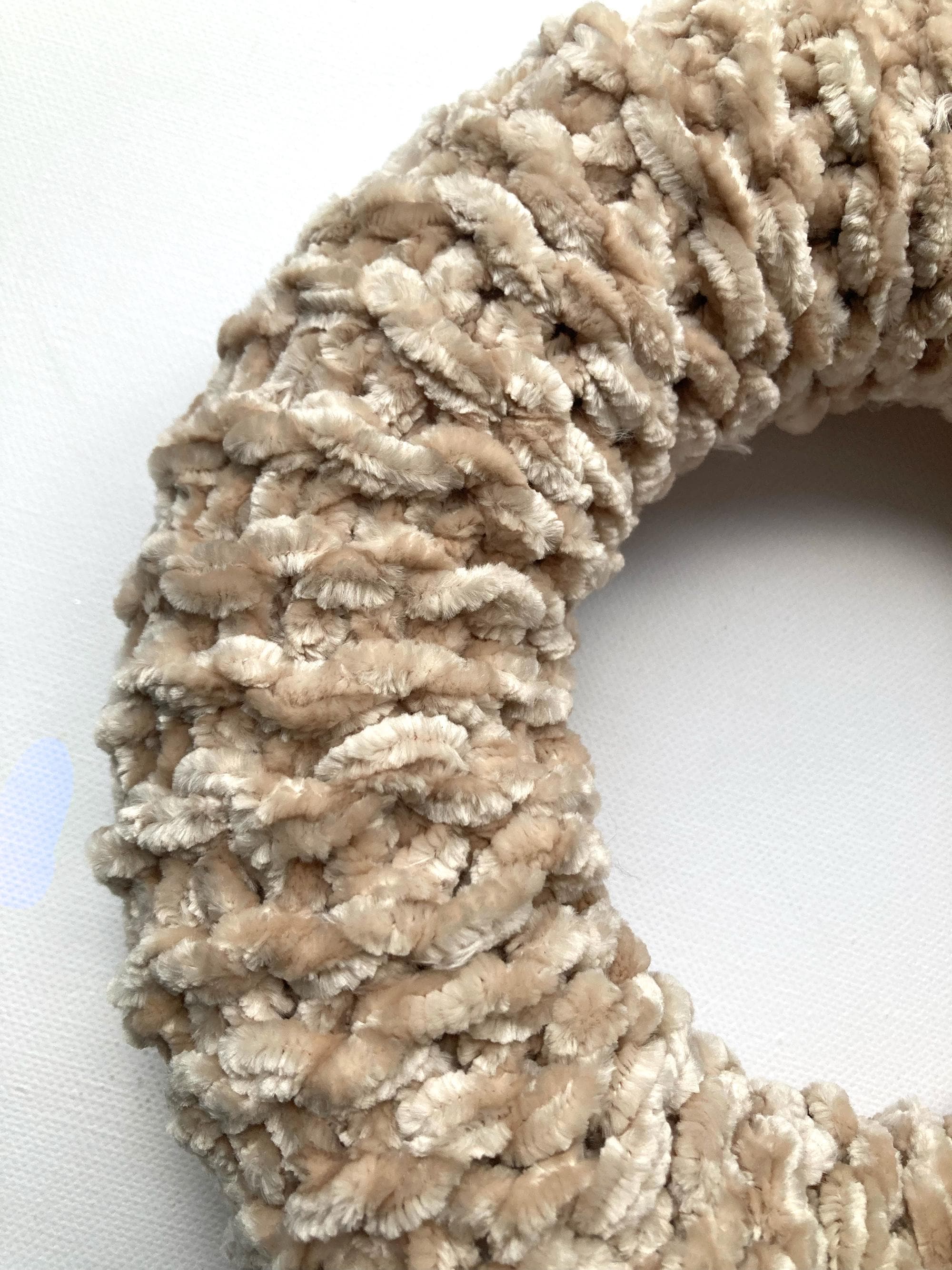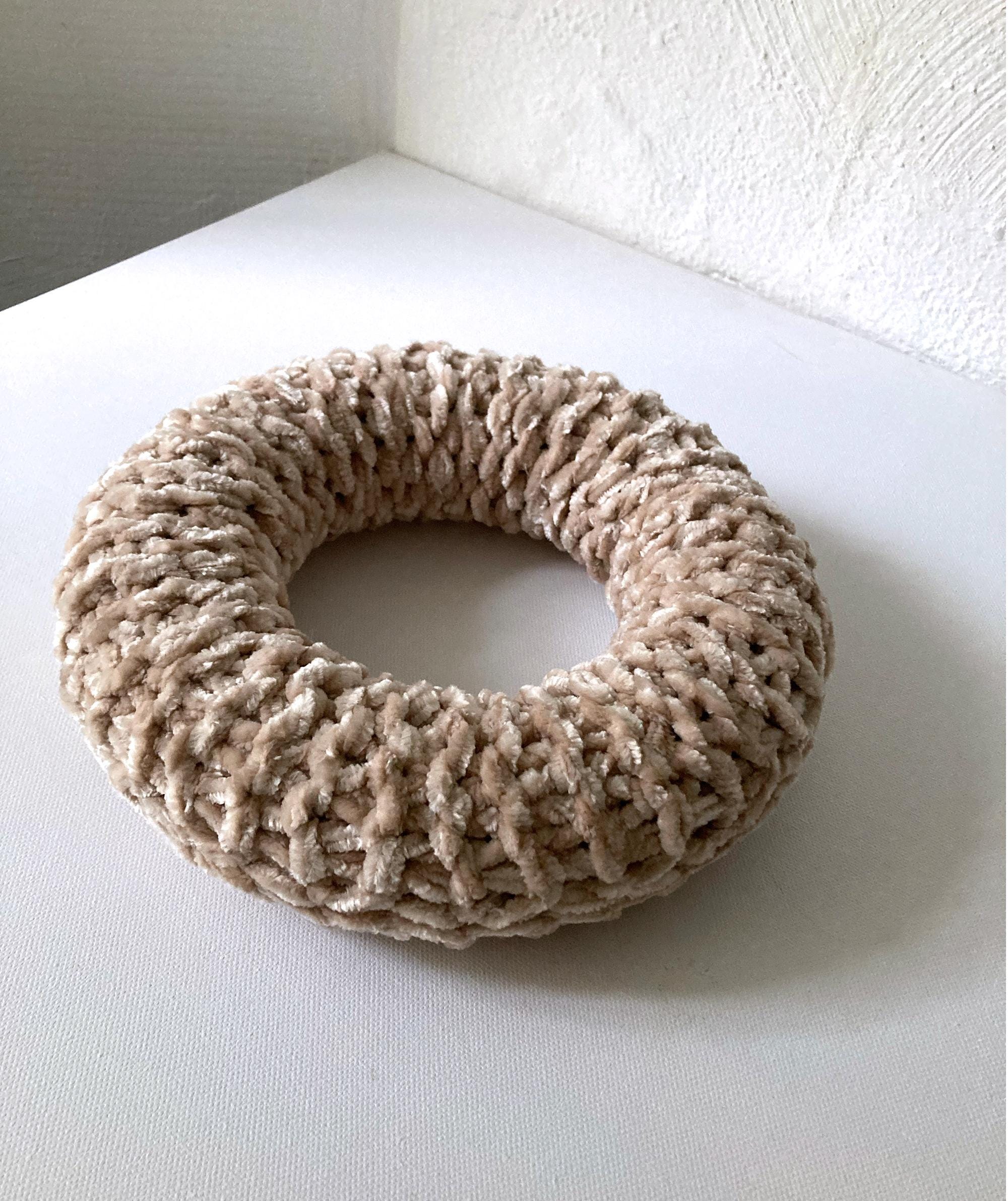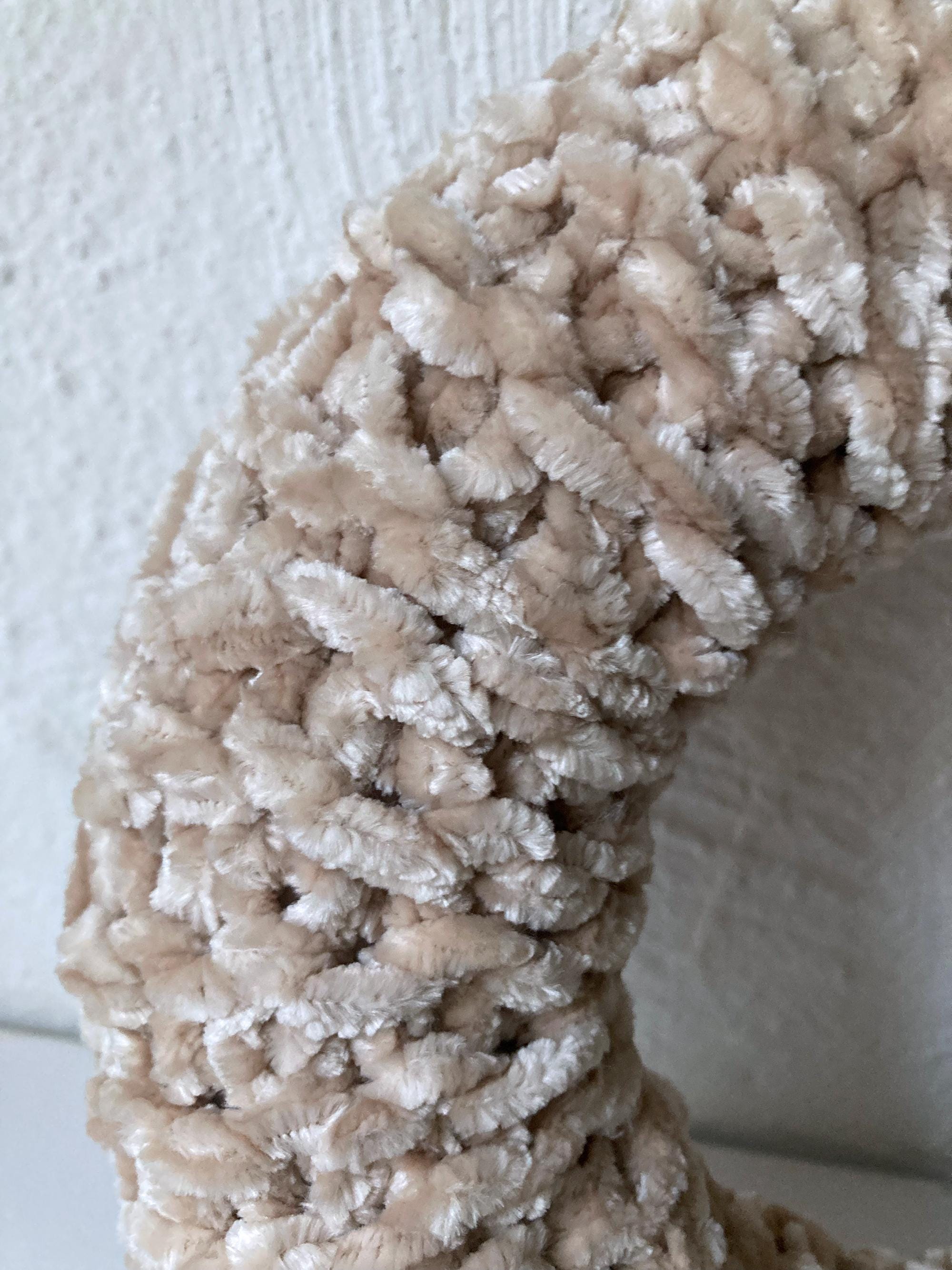 Autumn is the perfect time for decorating! Give your home a wonderful hygge atmosphere with this beautiful crocheted wool wreath in soft cream and beige. It's lovingly hand-knitted from a high-quality, velvety-soft chenille yarn in elegant burgundy or Bordeaux red. What an exceptionally stylish accessory for your home!