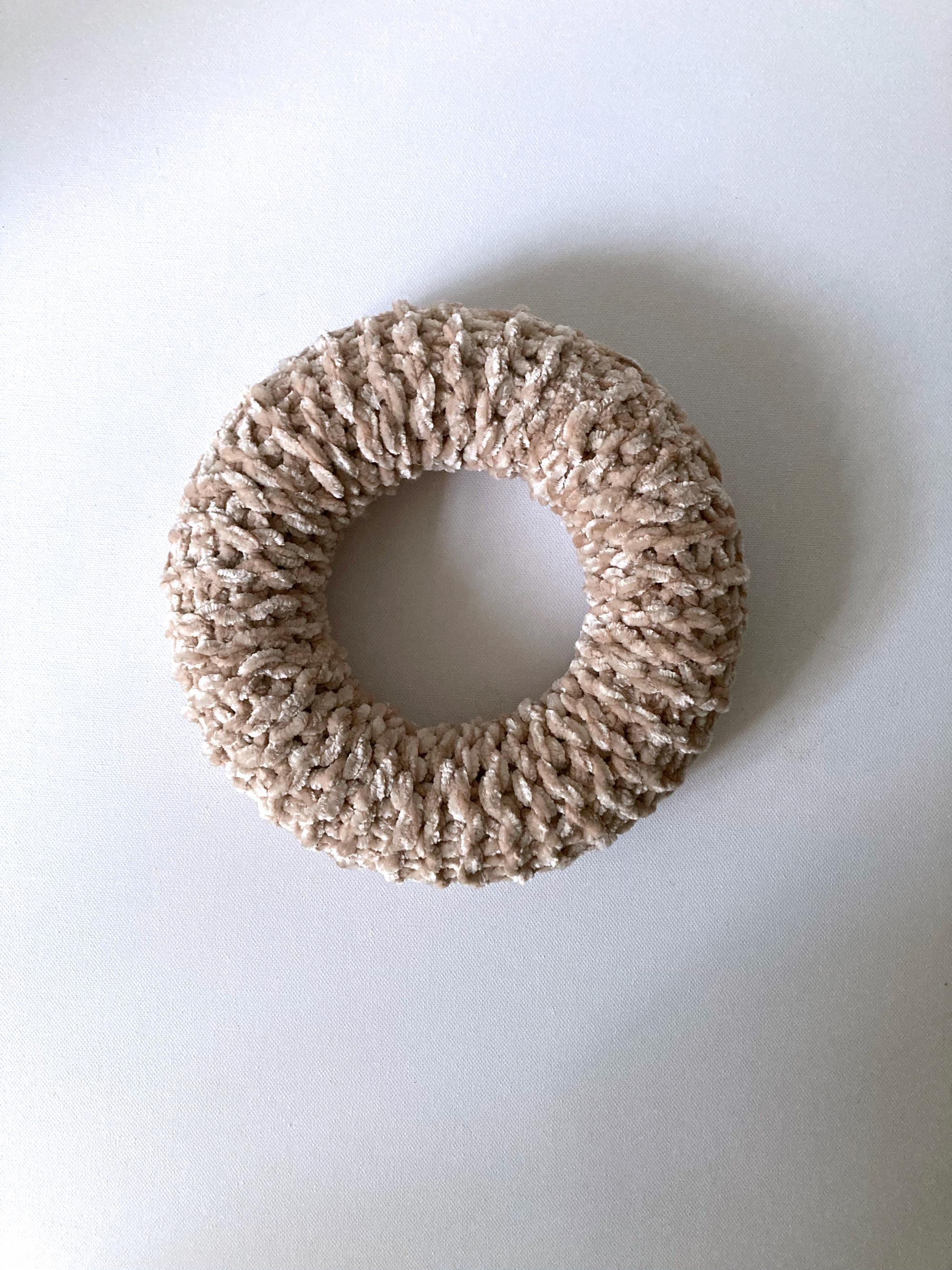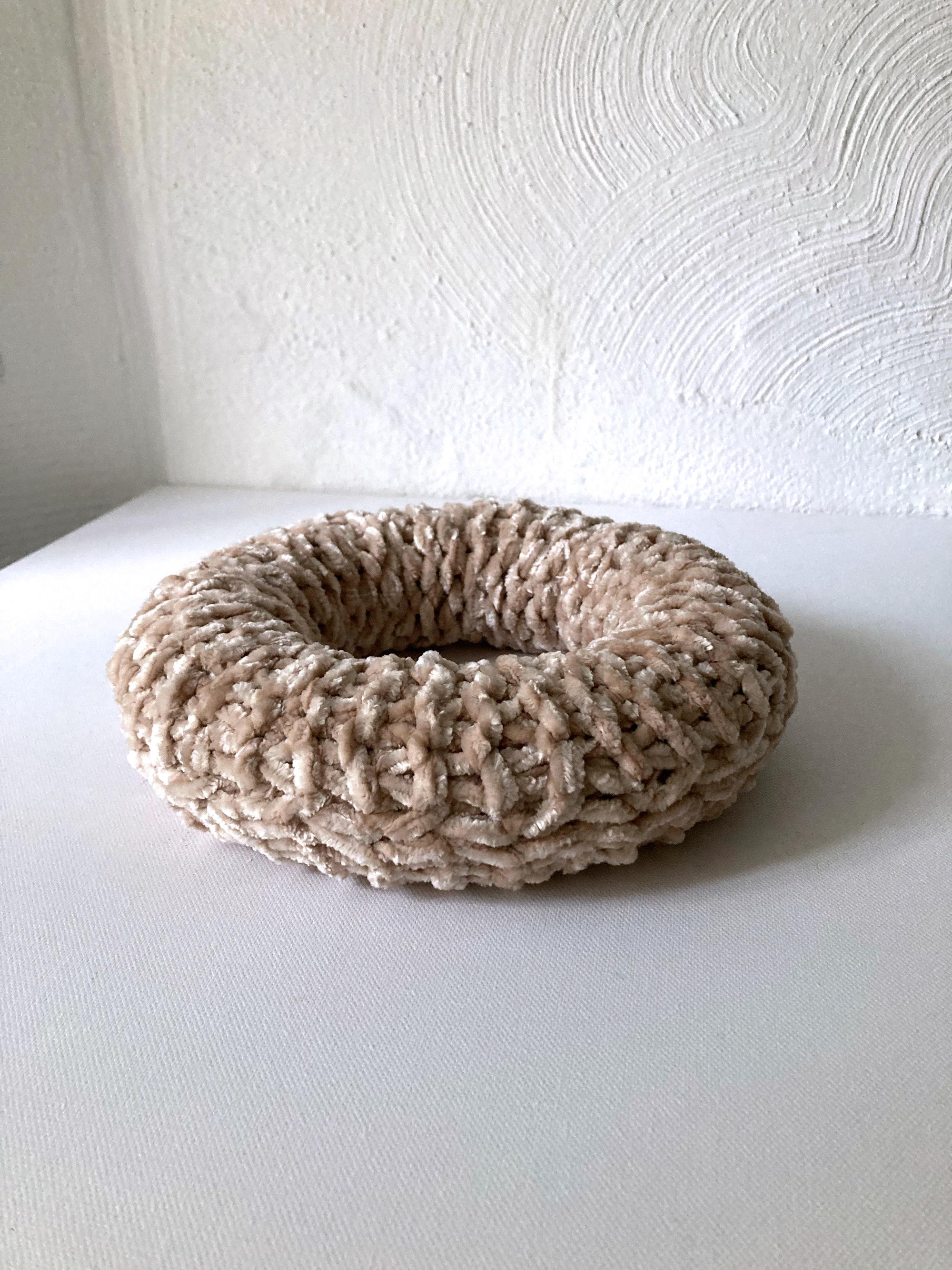 Vintage velvet wreath in cream/beige! Lovingly crocheted wool wreath in a wonderful velvet brocade look! Stylish cream table decoration.