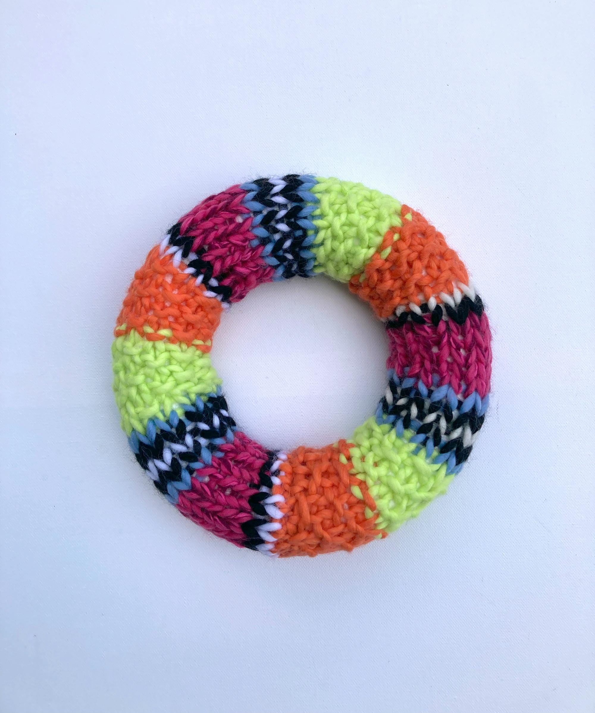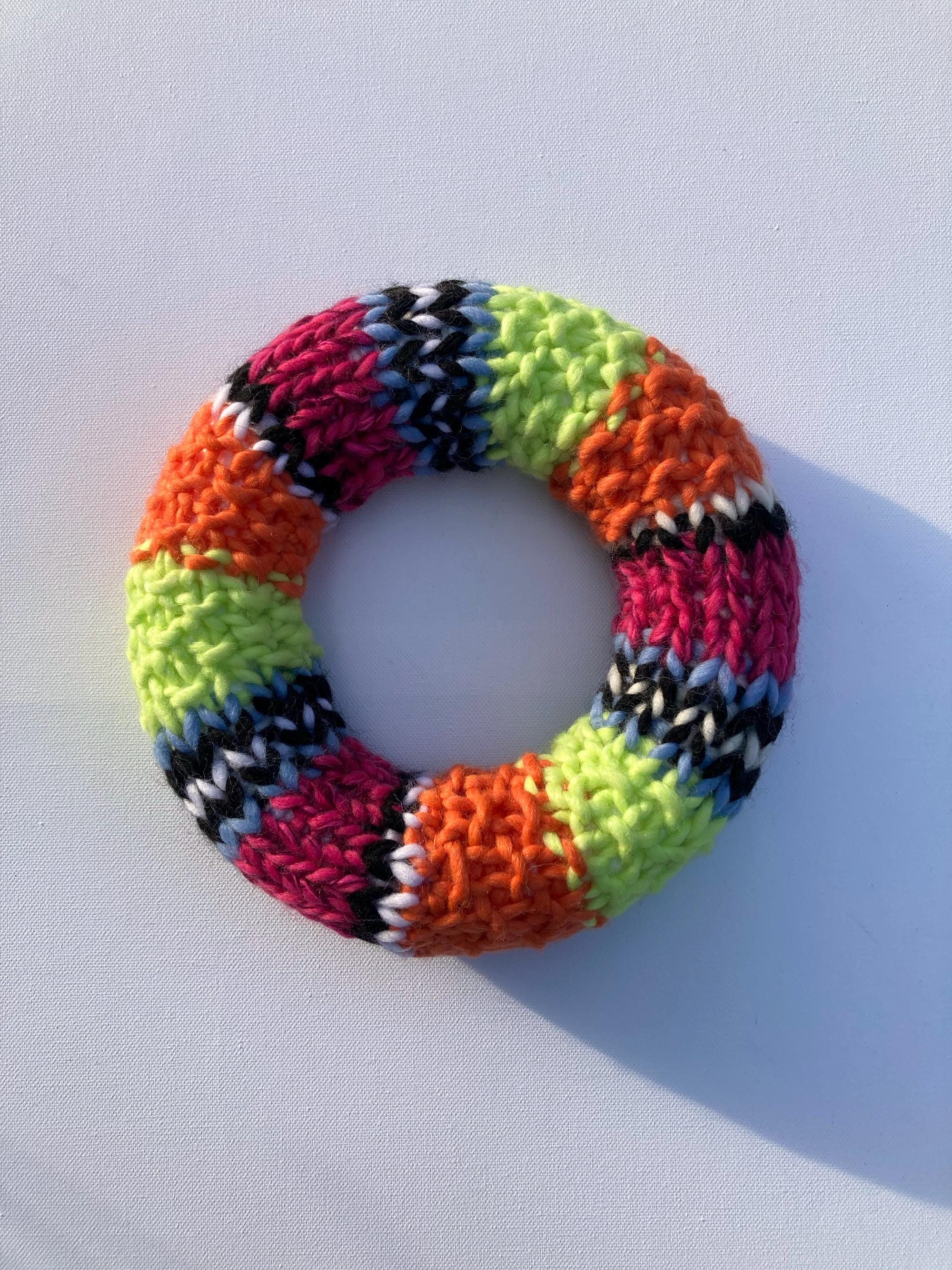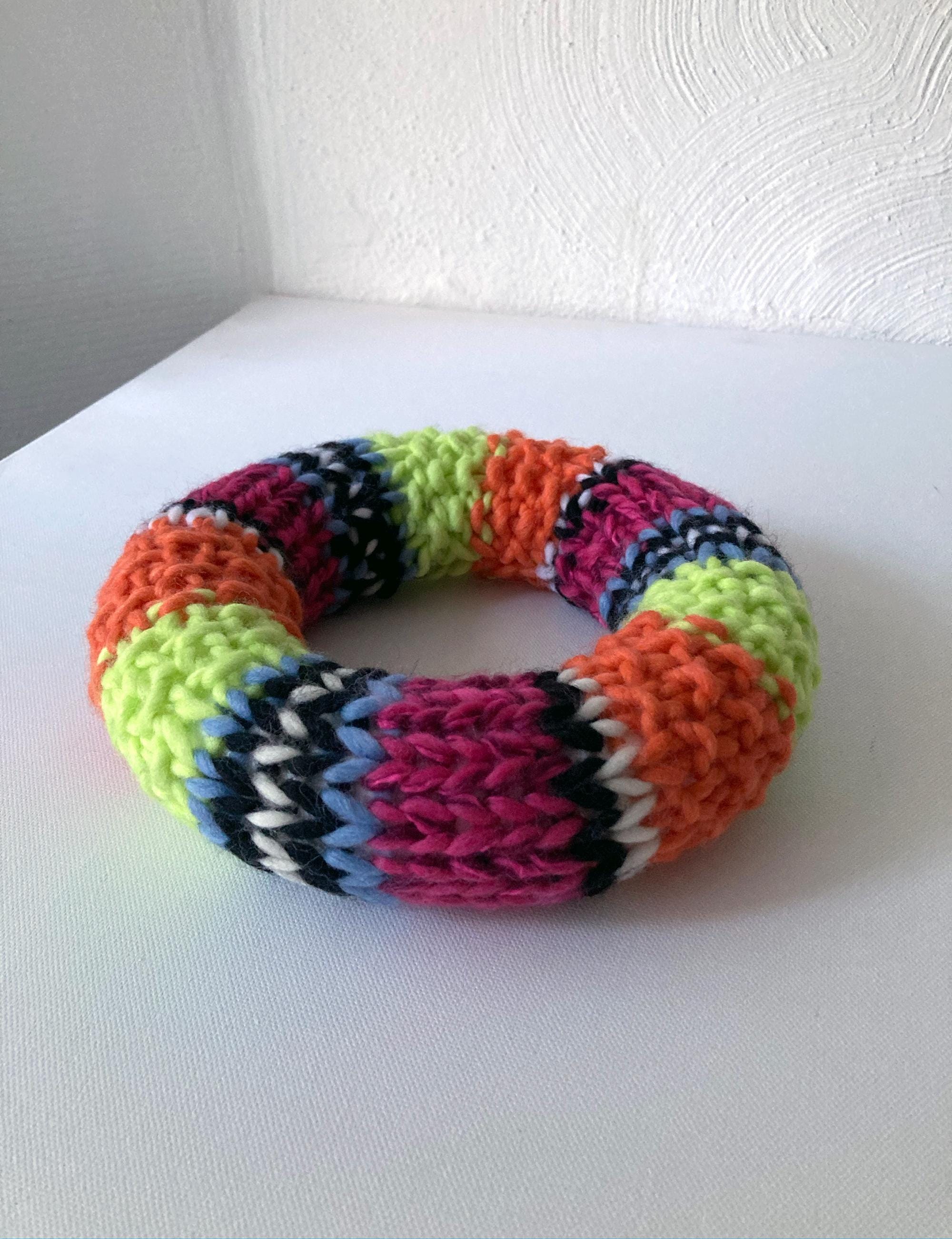 Bring spring into your home! This cheerful, colorful wool wreath is pure freshness and sunshine, guaranteed to lift your spirits! Lovingly hand-knitted with care, it features vibrant stripes of orange, pink, blue, and green. High-quality merino wool and t-shirt yarn alternate in the stripes. What an exceptionally stylish accessory for your home!