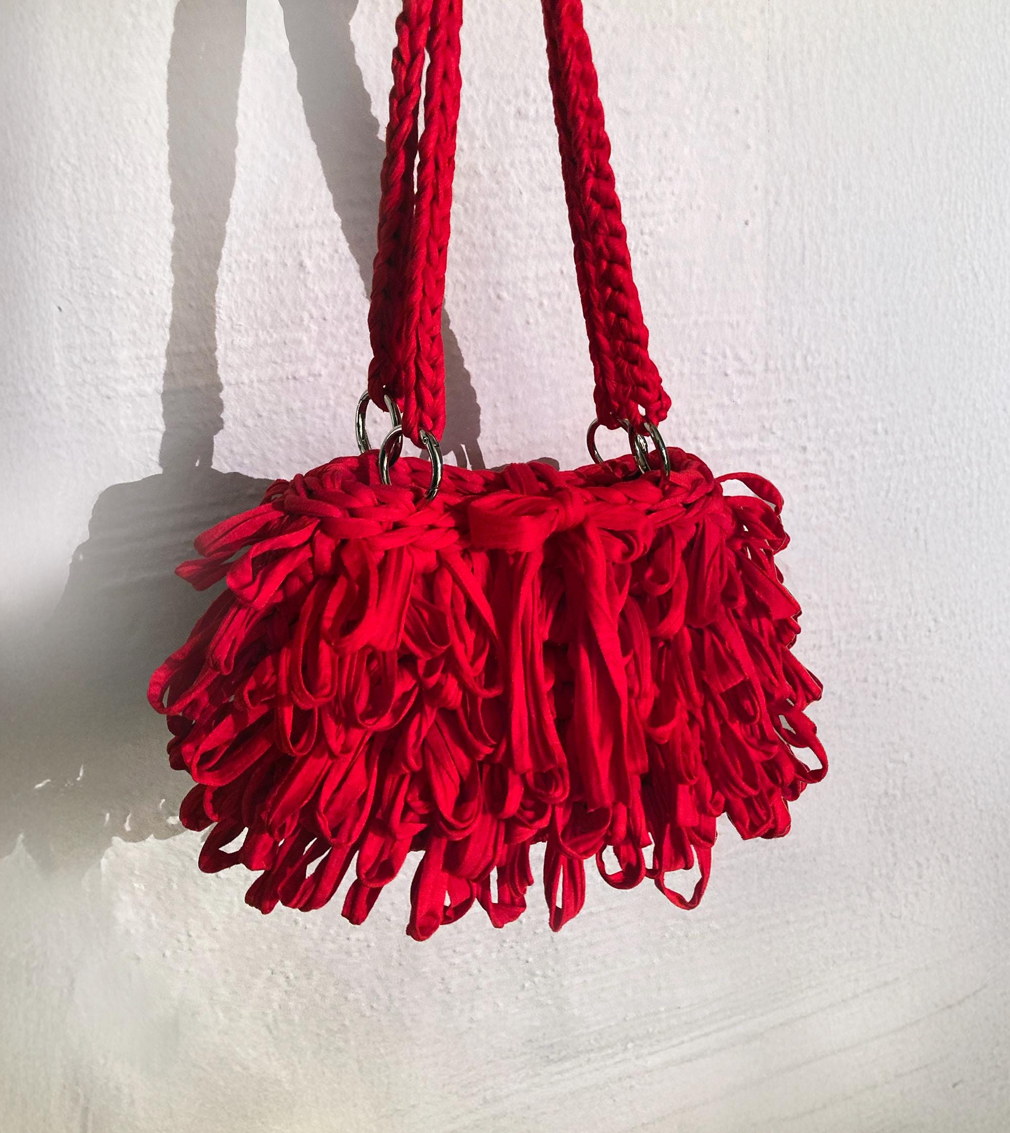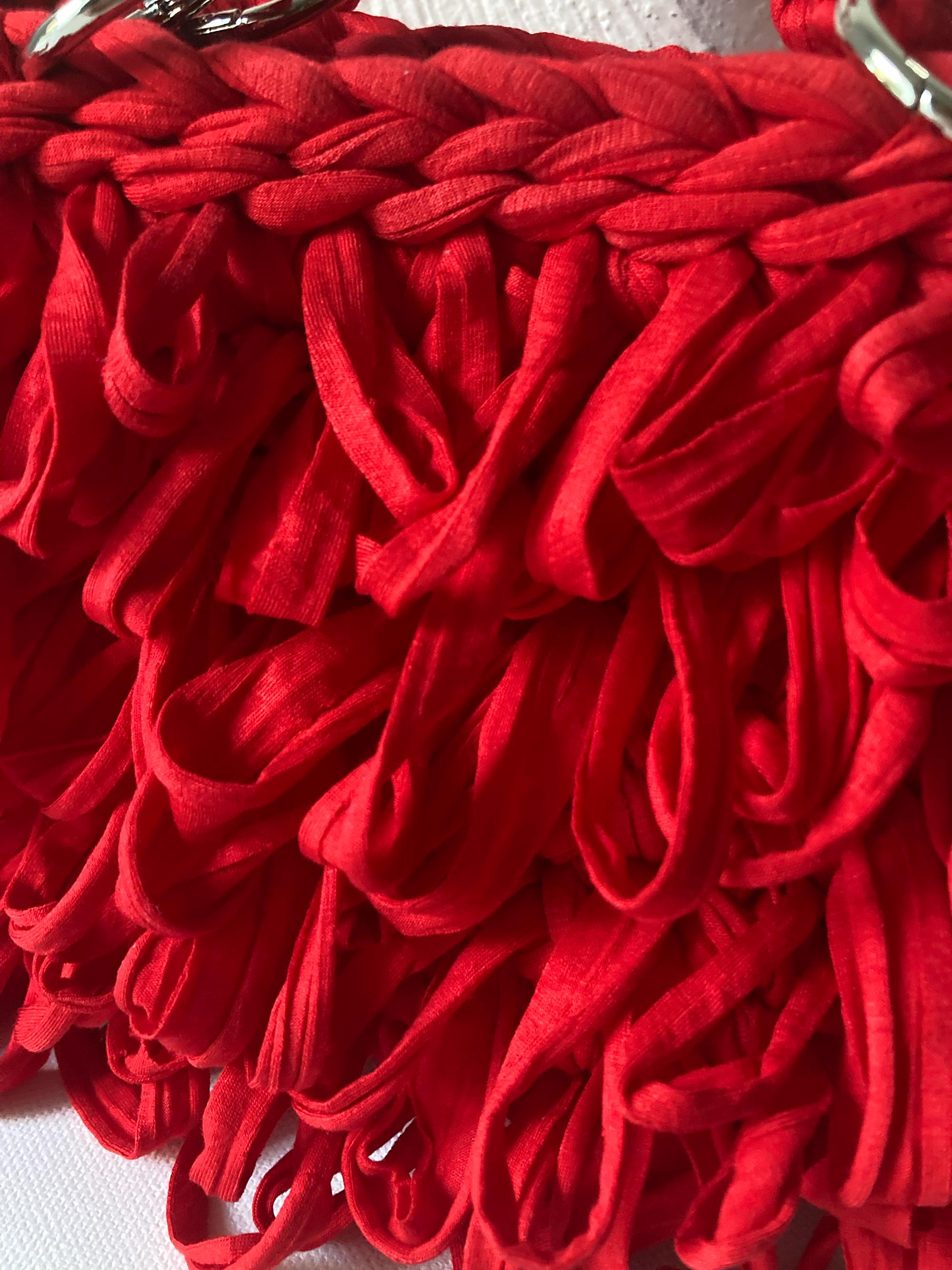 Red crochet bag with fringe | 3-in-1 clutch & shoulder bag | Extravagant gift | Handmade designer bag