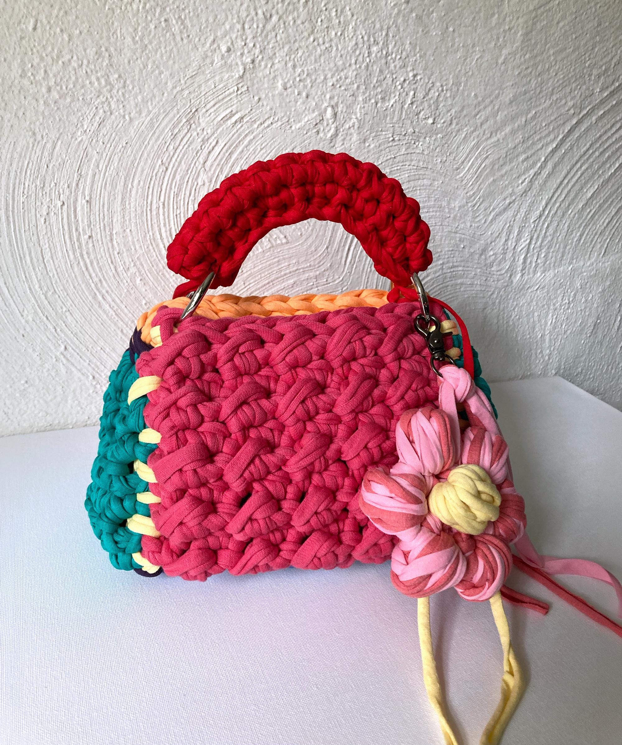 Happy Colours Retro Diner Handbag – 50s Hollywood Glamour | Color mix in pink, peach, turquoise | Woolbloomy unique piece with XXL flower